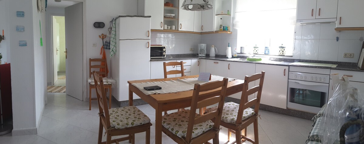 • Parkplatz neben dem Haus für 3 Fahrzeuge. • Haus mit 220 m2 auf zwei Etagen verteilt: 110 m2 pro Etage. • Geschlossener Garten, Grillen, Gartenterrasse mit Tisch und Stühlen. • Wifi • Haustierfreundlich. • Holzkamin und Heizung. • Voll ausgestattete offene Küche und Geschirrspüler. • Warmwasser durch Gasheizung • Waschmaschine. • Bettwäsche, Handtücher und Toilettenartikel. • Kapazität für 10 Personen. • 4 Doppelzimmer • 2 Badezimmer.