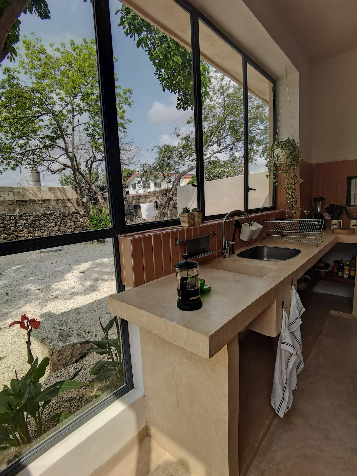 Casa Gallo ist ein ganz speziell gestaltetes Haus, das den modernen Stil eines Lofts in traditionellen Innenstadtwohnungen verbindet. Perfekt für bis zu 4 Personen, befindet es sich in einer der besten Lagen im historischen Zentrum von Merida, an der alten historischen Straße nach Campeche im Viertel Ermita, nur wenige Blocks von der Kathedrale entfernt. Casa Gallo verfügt über 2 Schlafzimmer, 1 Badezimmer, Wohnzimmer, Esszimmer und Küche, sowie mehrere in das Haus integrierte Gärten.