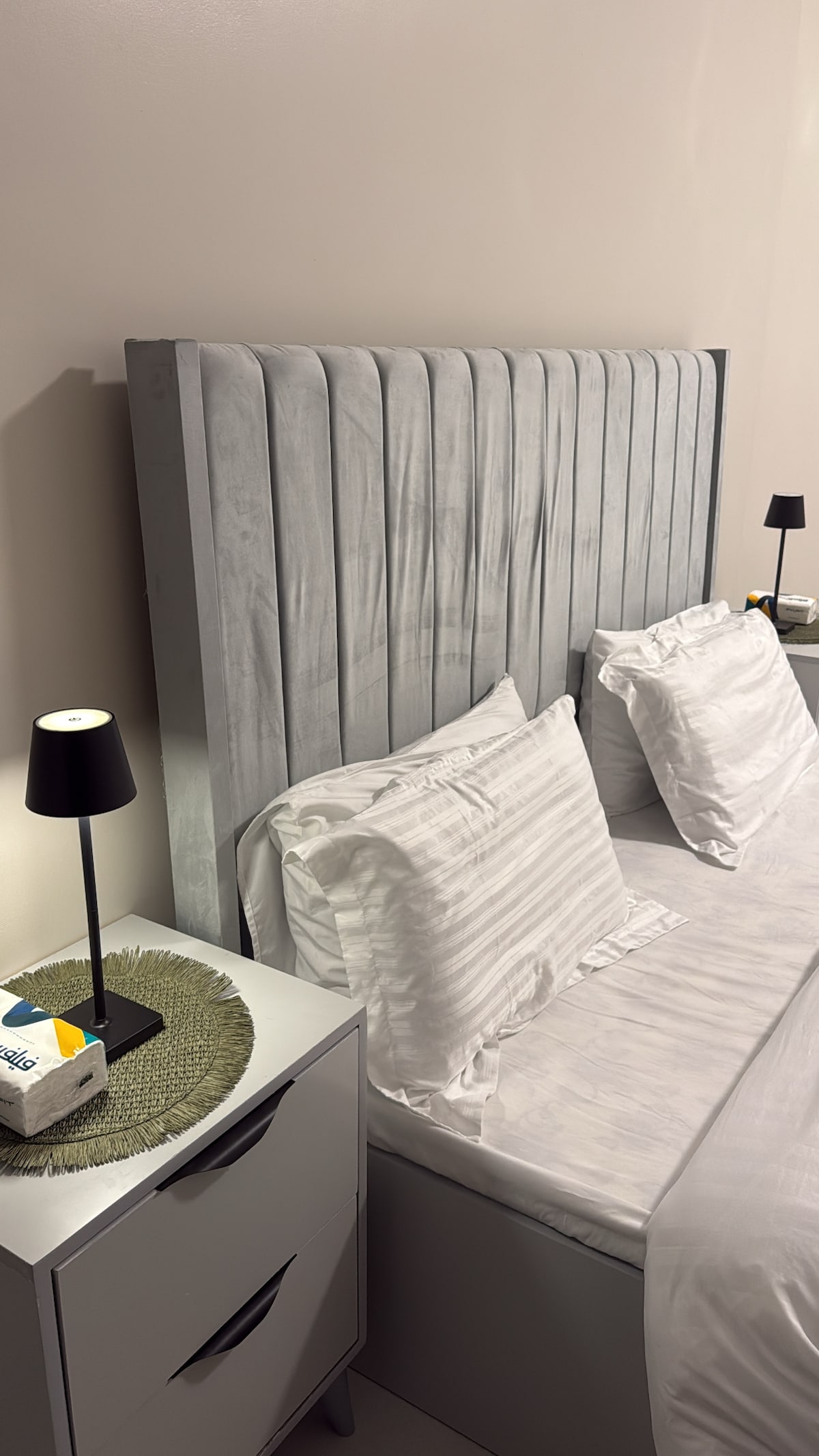 Eine luxuriöse Wohnung mit Eleganz, Ruhe, modernem Design, bestehend aus einem Schlafzimmer, Flur, WC, Kaffeeecke, kleinem Kühlschrank, Mikrowelle und ihrer Lage (in der Nähe des Wassertanks - in der Nähe von Dienstleistungen - Moschee vor der Wohnung - National Life Hospital - Lebensmittel - Wäschereien - Restaurants und in der Nähe von Mojan Park (Einkaufszentrum) - Riyadh Walk
