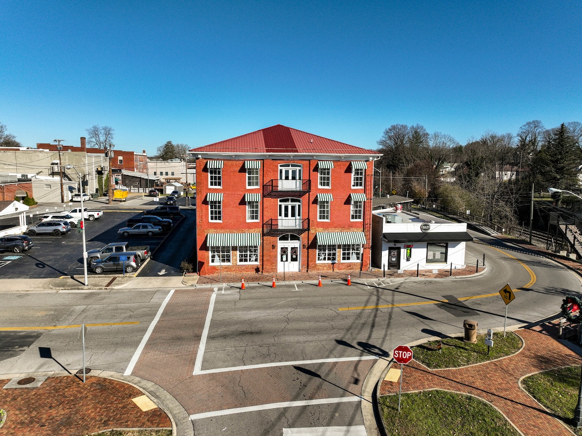 Unsere Greenway Suite ist eine wunderschön renovierte Wohnung mit Blick auf die Main St. Zentral gelegen in einem sehr alten Gebäude und nur wenige Gehminuten von allem entfernt, was du in Downtown Abingdon sehen möchtest. Ausgestattet mit den besten Annehmlichkeiten und allem Komfort, den du brauchst, um einfach drinnen zu bleiben und das Erlebnis dieses klassischen Altbaus zu genießen, wenn du es vorziehst! Mit einem neuen und modernen Flair bietet dir diese große Suite Komfort und Charme und bietet gleichzeitig einen sauberen, geräumigen, privaten und komfortablen Aufenthalt.