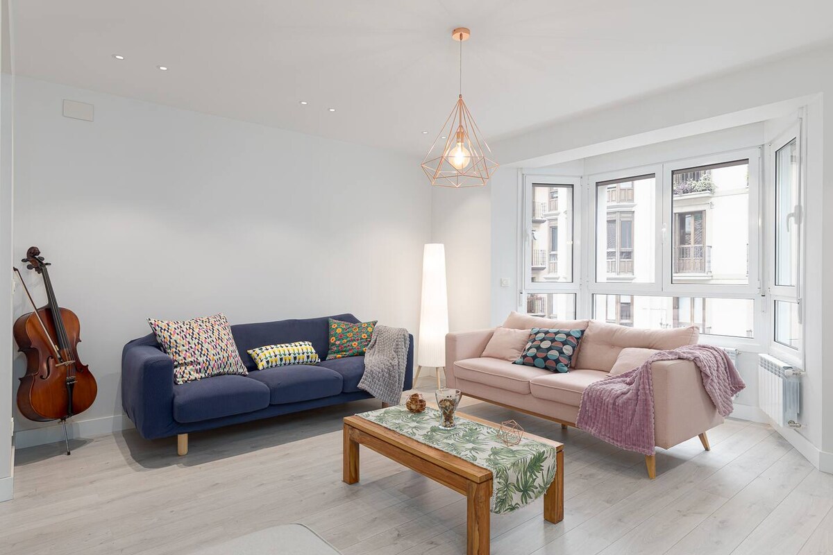 Diese neue Wohnung im urbanen und gemütlichen Stil mit einem Schlafzimmer mit Kingsize-Bett und Schlafsofa (144 x 180 cm) befindet sich im Herzen des Viertels Gros, 1 Gehminute vom Stadtzentrum entfernt Einwandfrei neu renoviert, verfügt über Klimaanlage, 55" Fernseher, WLAN, Nespresso. Voll ausgestattet für Kinder und Babys. Perfekt gelegen, 2 Minuten vom Busbahnhof und Bahnhof entfernt, sowie neben einer direkten Bushaltestelle zum Flughafen San Sebastián.