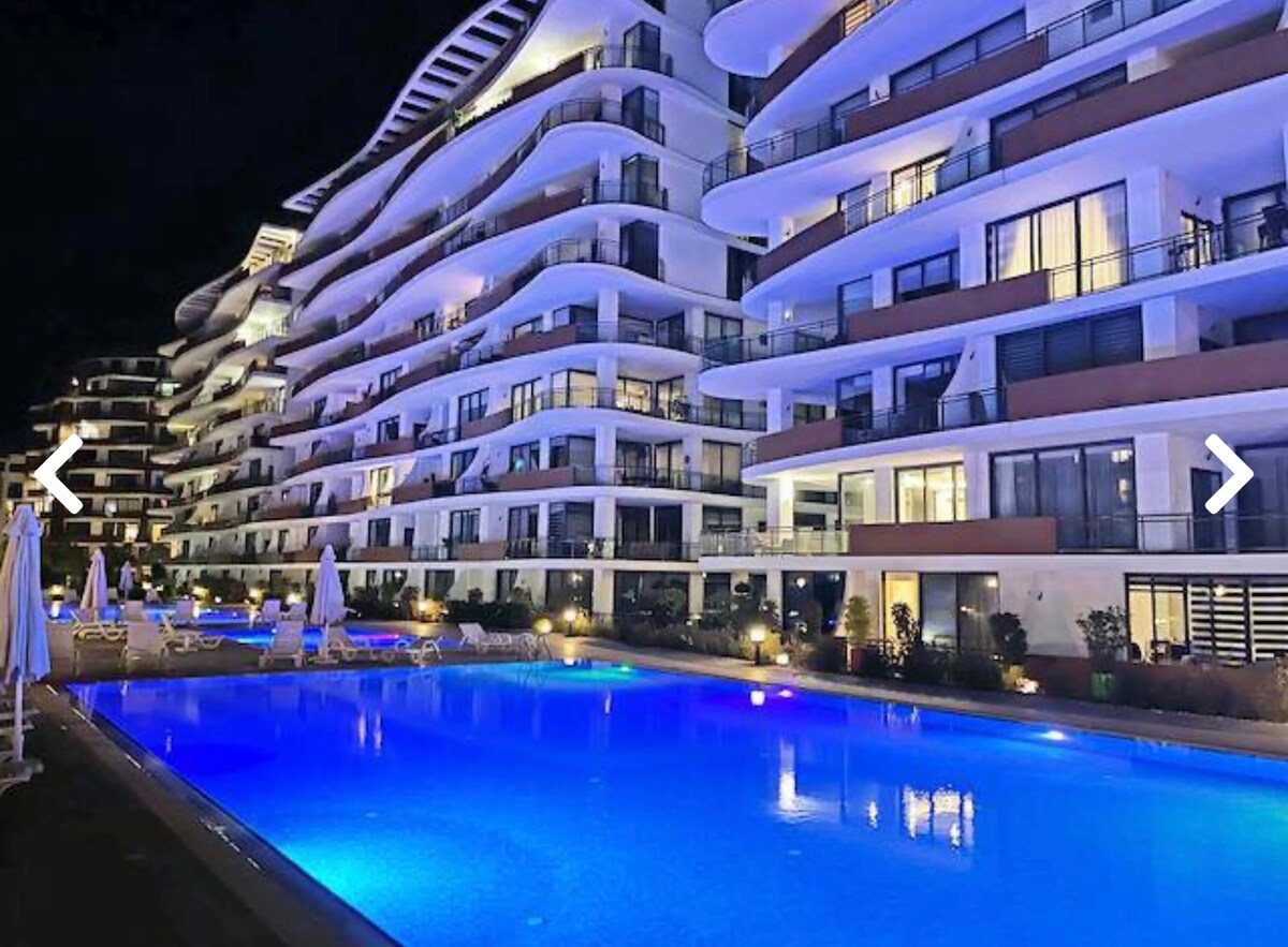Große 1+1 Wohnung Riesiger Balkon, 65-Zoll Smart-TV, sauber