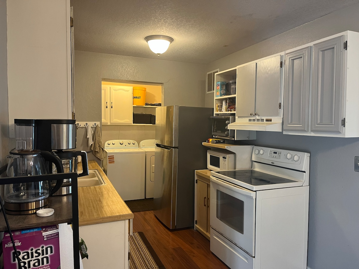 Sei in der Nähe von allem – günstig gelegen 1 Block von der Hauptstraße entfernt – so wird die Planung deines Besuchs ganz einfach. Unser smart-fähiges Zuhause verfügt über einen offenen Grundriss von der Essecke und Kaffeebar mit einer Kuerig, durch die Gally-Küche bis zum Wohnzimmer mit Roku-TVs und bequemen Queensize-Betten in jedem Zimmer, WLAN, Waschmaschine/Trockner, umzäunter Bereich mit Gill und Feuerstelle – der Roadrunner ist voll ausgestattet mit allen Annehmlichkeiten von zu Hause für deinen Aufenthalt. Privates Ambiente in einem zentral gelegenen Haus.