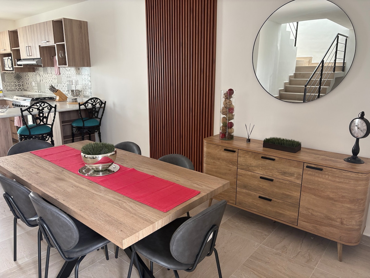 Un departamento residencial con mucho estilo ideal para disfrutar con tu familia, dentro de un exclusivo residencial con alberca. ••SI FACTURAMOS•• Cuenta con áreas comunes como alberca,dog park, ajedrez gigante, canchas de fut bol, juegos infantiles, etc. IMPORTANTE: Para el uso de alberca se debe solicitar las pulseras antes del inicio de la reservación. NO ofrecemos el servicio de aire acondicionado, lavadora o secadora.