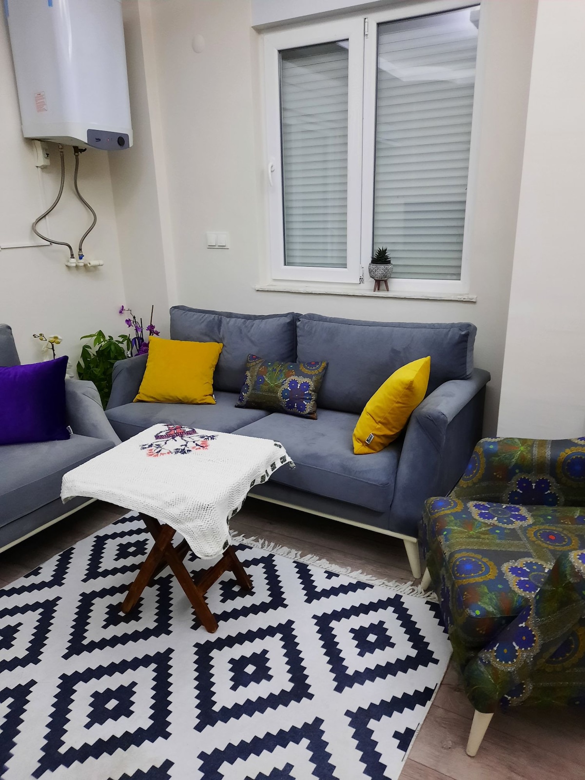 Unser Haus befindet sich in zentraler Lage und ist mit zwei separaten verschlüsselten Türen und Sicherheitskameras geschützt, die immer geschlossen sind, und es ist eine geräumige, saubere und stilvolle Wohnung, in der du als Familie in der Nähe von überall sein wirst, da sie sich zu Fuß im Schloss ( Altstadt ), dem Freizeitzentrum, dem Yachthafen, den Einkaufszentren, dem Mermerli-Strand, dem Uhrturm, dem Hadrians-Tor, der Straßenbahn und den Bushaltestellen befindet.