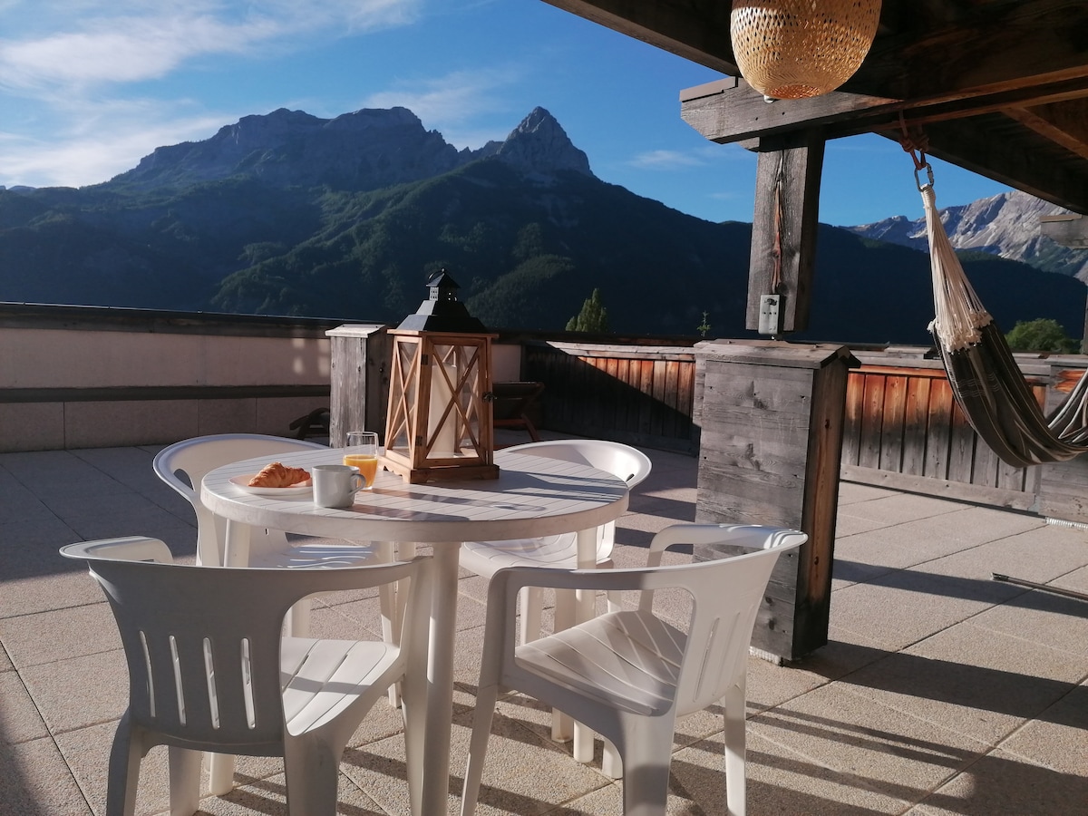 T3 Terrasse splendide vue montagne & douche Hammam