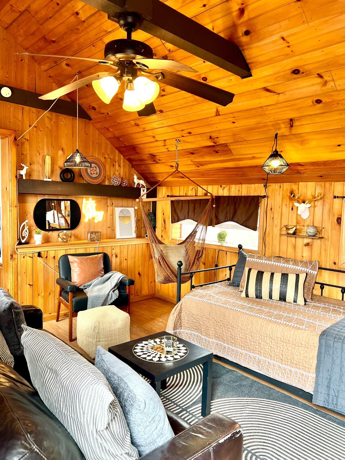 Du bist nur wenige Schritte davon entfernt, die schönsten Sonnenuntergänge entlang des North Sandy Ponds (gegenüber dem Lake Ontario) zu erleben, wenn du in unserem entspannenden, einzigartigen und gemütlichen A-Rahmen übernachtest – inspiriert von allen magischen und erdigen Dingen. Setze dich an das Feuer im Hinterhof, trinke Kaffee am elektrischen Kamin, lies ein Buch in der Schlafzimmerecke, spiele Brettspiele, tanze in der Küche und genieße vier Jahreszeiten mit Aktivitäten in der Nähe wie Angeln, Kajakfahren, Bootfahren, Jetski, Wandern, Schwimmen, Eisfischen, Motorschlittenfahren und Schneeschuhwandern.