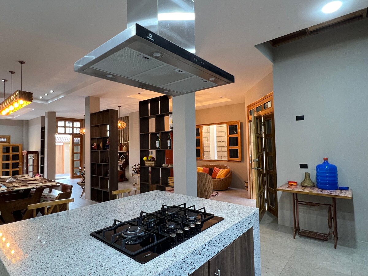 Komfortables 3-stöckiges Haus mit direktem Strandzugang und Panoramablick auf das Meer. Perfekt für Familien oder eine Gruppe, bietet es: 🛏️ 5 Schlafzimmer mit Klimaanlage | Schlafzimmer vier und fünf, die durch eine Schiebetür verbunden sind und sich eine Hauptklimaanlage teilen. Für dein Baby steht ein Babybett zur Verfügung. 🍽️ Voll ausgestattete Küche | 5 voll ausgestattete Badezimmer| 🛋️ Mehrere Wohnzimmer ⛱️ Strandzelt inklusive. Grillplatz und privater Pool. 🚫Nicht haustierfreundlich 👥 Max. Kapazität: 10 Personen (einschließlich Kinder).