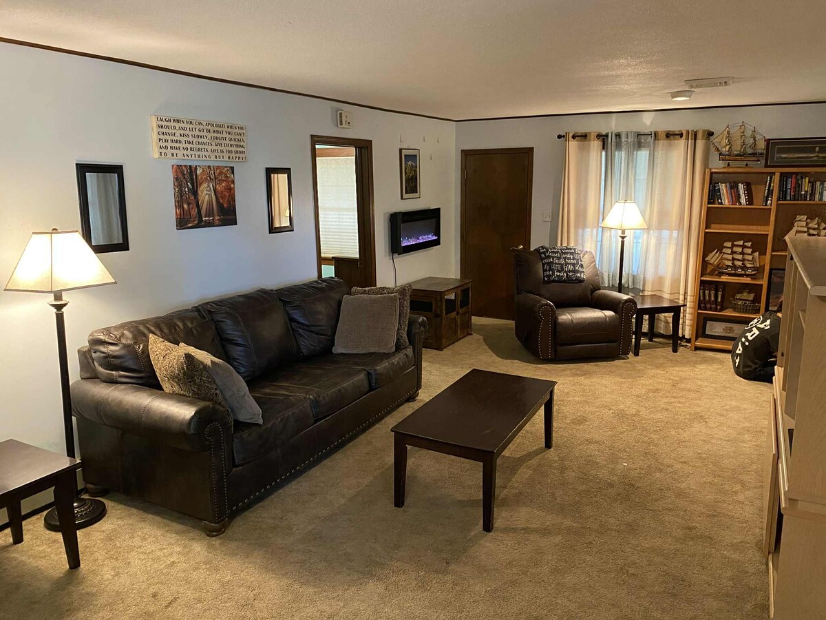 Entspanne dich in unserem kleinen Bungalow mit 2 Schlafzimmern und 1 Bad in unserer kleinen Bauernhof-Community im Südosten von Kansas. Perfekt, wenn du mehr Platz als ein Hotel und die einzige Unterkunft vor Ort im Umkreis von 17 Meilen suchst. Lokale Bar und Grill weniger als 1 Block entfernt Überdachter Parkplatz und Haus befindet sich auf dem Doppelparkplatz. WLAN inklusive und Roku auf den Fernsehern. Die Küche ist voll bestückt mit den Werkzeugen, die du brauchst, nur dein Essen mitbringen, oder wir verkaufen auch Rindfleisch. Wir können ein Paket mit dir besprechen, das deinen Bedürfnissen für deinen Aufenthalt entspricht.
