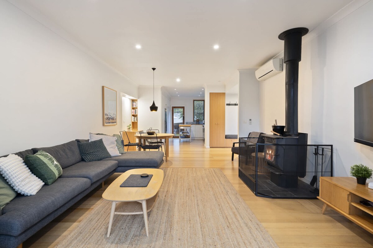 Tucked away in a quiet pocket of Rye, this charming 2-bedroom retreat is perfect for couples seeking a cosy escape. Backing onto a peaceful reserve, it offers a rustic feel with modern comfort, featuring an indoor fireplace, a dreamy wood-fired outdoor bath under fairy lights, and a relaxed, pet-friendly vibe. Ideal for unwinding and slowing down.