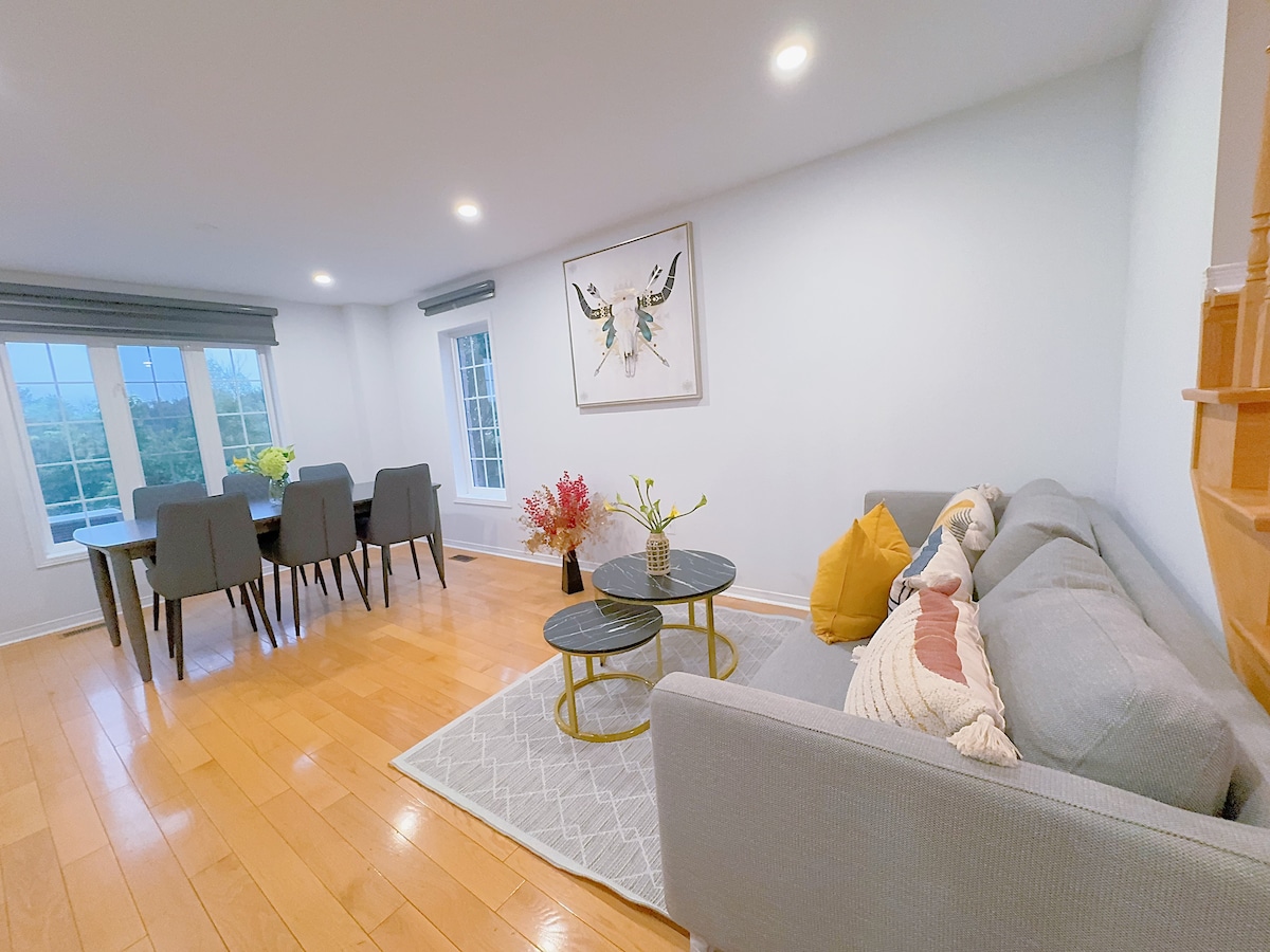 Entdecke unseren charmanten Boho-Chic-Retreat in der Nähe der Innenstadt von Markham, dem Pan Am Center und der York University. Perfekt für Veranstaltungen und Abschlussfeiern, bietet es Platz für bis zu 7 Gäste. Genieße den Komfort eines nahegelegenen hochwertigen Lebensmittelladens und einer herrlichen Auswahl an Geschäften, die nur wenige Gehminuten entfernt sind, darunter Bubble-Tee-Cafés und Schönheits- und Wellnesszentren. Direkte Bushaltestellen zur Unionville Go Station und zum Finch Go Bus Terminal befinden sich ebenfalls in der Nähe. Dein perfekter Aufenthalt wartet!