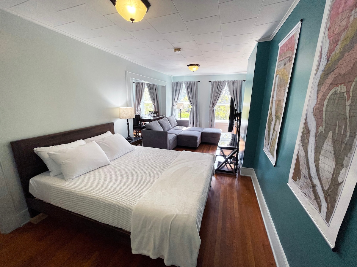 Wunderschön restauriertes Dorfhaus aus dem Jahr 1875, 2 Blocks vom Seneca Lake entfernt, im Herzen des Weinlandes. Unser malerisches Dorf liegt zentral am Seneca Lake, wo über 50 Weingüter/Brauereien auf dich warten. Der Keuka Outlet Trail ist ein paar Blocks entfernt – nutze unsere Fahrräder, um wunderschöne Wasserfälle und Wanderwege zu erkunden. Deine geräumige private Suite verfügt über einen separaten Eingang und eine Veranda ganz für dich allein mit Minikühlschrank, Mikrowelle und Keurig sowie einem eigenen Bad. Die Copper Barn nebenan hat zusätzliche Unterkünfte.
