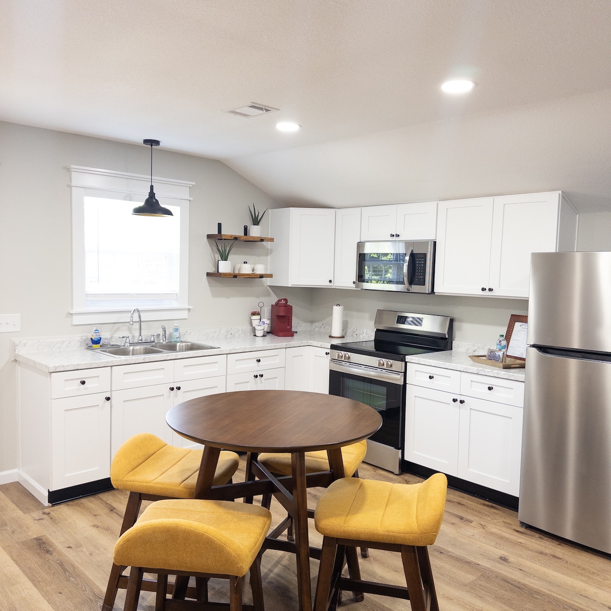 Diese besondere Unterkunft hat einen ganz eigenen Stil. Etwas außerhalb der Stadt gelegen, ist dieses schöne versteckte Juwel eine einladende Unterkunft, sobald du die Tür öffnest. Ganz gleich, ob du eine Nacht oder eine Woche bleibst: Du wirst mit Sicherheit Komfort mit dem neuesten Stil und den neuesten Annehmlichkeiten genießen. Du wirst deine personalisierte Kaffeebar als eine willkommene Abwechslung empfinden; was wirst du kreieren?! Der Wohnbereich ist malerisch und verfügt über einen Fernseher, sodass du deine Füße hochlegen und die neueste Unterhaltung streamen kannst.