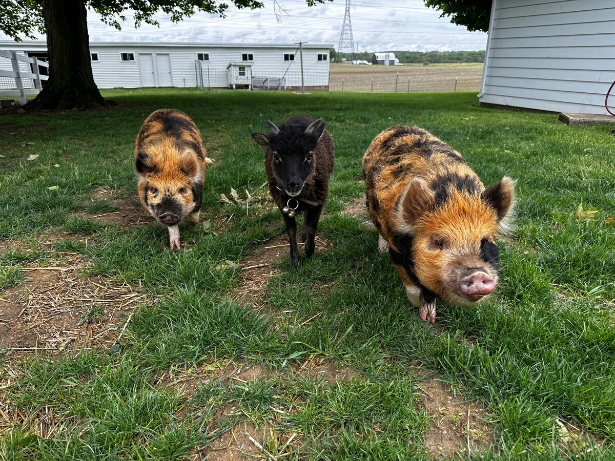 Übernachte in einer privaten Suite im 2. Stock in einem modernen Bauernhaus, in dem wir auf einem Familienbauernhof im Amish-Land wohnen. Gäste haben die gesamte 2. Etage: 2 Schlafzimmer, ein eigenes Bad und ein Wohnzimmer. Du kannst Amish-Buggys beim Vorbeifahren zusehen, während du auf der Veranda schaukelst, gemeinsame Terrassen nutzt oder an einem Bach sitzt. Wir haben Kühe, Ziegen und Hühner. Wir befinden uns im Herzen der Amish/Mennoniten-Gemeinde Shipshewana, nur wenige Minuten von der Innenstadt von Shipshewana und allem, was sie zu bieten hat, entfernt. Ein authentischer, komfortabler Kurzurlaub auf dem Land.