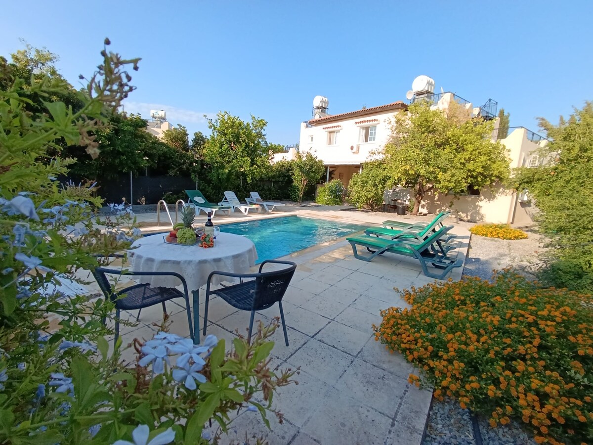 Villa in the TOP 5% on Airbnb. 5 minutes from the beach, aqua park and casino of Acapulco Hotel, 20 minutes to center of Girne. The house has large cinema, massage chair, luxurious marble furniture, panoramic magical views. Electric transport is provided free to the guests! This exquisite twin-villa (duplex) in gated complex with three pools has privat garden, font, an olive tree house, ping pong, mangal, swing, trampoline and two fountains. Two shops, two restaurants and a cafe near the house.