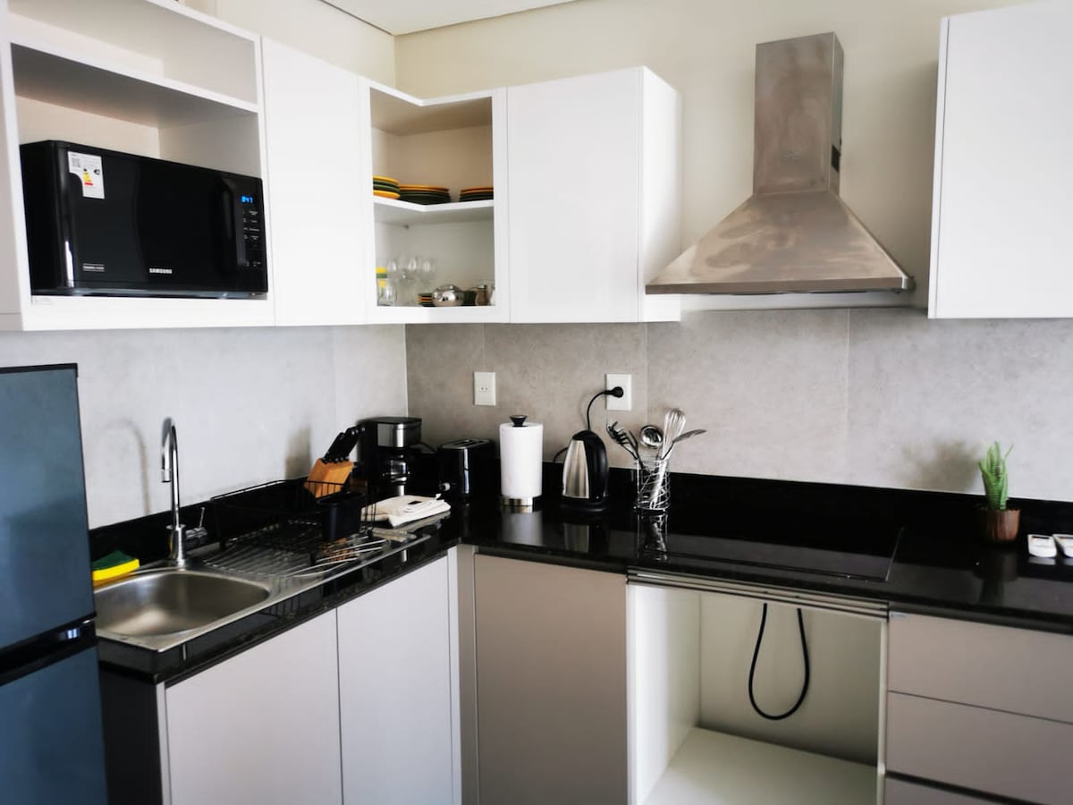Relájate y recarga energías en este ocio de tranquilidad y elegancia. Departamento moderno en una zona privilegiada a pocos pasos del shopping del Sol en el eje corporativo de Asunción. Tiene todos los servicios, como Smart TV, WiFi, ropa de cama, cocina totalmente equipada, amplio balcón, cerradura electrónica portería las 24 hs gimnasio equipado, lava/secaropa, terraza con vistas a Asunción, parrillero al aire libre y salon climatizado, piscina, sala de cinema, centro de negocios y mucho más.