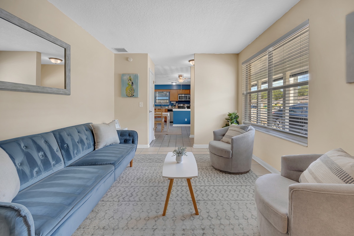 🌴 Work-Ready Ground-Floor Oasis at Jacksonville Beach 💛 Why You’ll Love Staying Here ✨ Designed for Productivity & Relaxation – Two workstations with fast Wi‑Fi, plus a serene backyard pergola for true work-life balance 🌊 Steps to the Beach & Local Hotspots – Just blocks from the ocean, top dining, breweries, shops, and the Jacksonville Beach pier 🐾 Family & Pet-Approved – Fully fenced yard, washer/dryer, beach gear, and a layout perfect for couples, friends, or traveling professionals