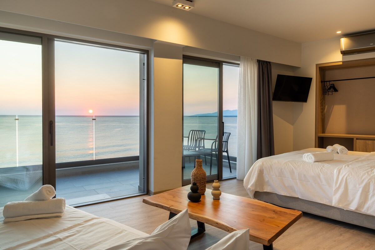 Entfliehe den Seafront Suites, einem privaten Refugium neben einem himmlischen blauen Meer am atemberaubenden Beach Rivera von Hersonissos. Eingebettet in eine ruhige und abgelegene Bucht mit Panoramablick und Sonnenuntergängen, die blendend sind, existiert der Rest der Welt nicht und gibt dir die Freiheit, deine Hemmungen loszulassen und für den Moment zu leben. Weitere Informationen Unsere luxuriöse Strand-Suite ist modern und minimalistisch mit extrem komfortablen Gästezimmern, Erdtönen und modernen Akzenten, um den Geist zu beruhigen und die Seele zu wärmen.