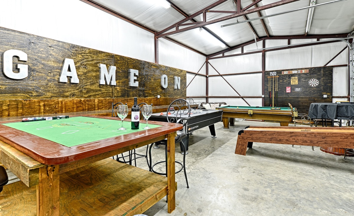 A great place for your rehearsal dinner or event! Pickleball, Sauna, hot tub, heated Swim Spa, Fire Pit, Xbox One, Pinball, Skee Ball, 2 8' Pool Tables! For groups of 11 or more, there is a 4th bedroom w/ full bath & TV in a 300 sq ft ADU. For groups of 14 or more, there is a 5th bedroom in a 2nd ADU. Dart boards, Arcades, 2 Ping Pong, Air Hockey, Soccer Goals, 2 Shuffleboard tables, Volleyball, 3 BBQ including a smoker, Corn hole. Poker and Blackjack Table. 7 Smart TVs! Optional Event space