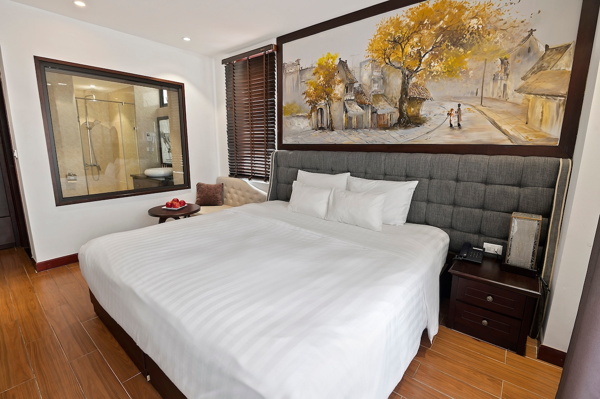 The room was decorated by Green Style with a lot of trees, an outstanding view of Westlake will bring you a comfortable peaceful morning! Phòng được trang trí theo phong cách XANH (Green) với nhiều cây bên trong, view rộng lớn ôm trọn Hồ Tây (West Lake) sẽ giúp bạn có một buổi sáng yên bình và an lành!