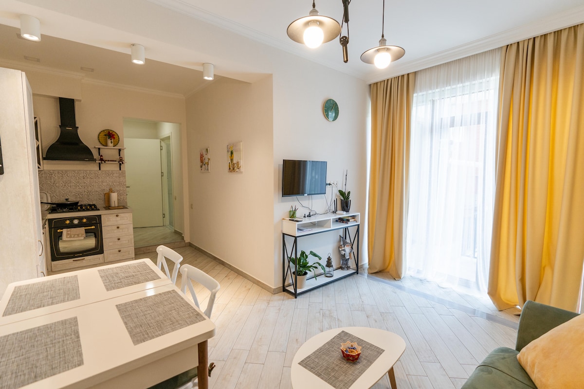 Wache morgens mit einem herrlichen Ausblick auf die Stadt auf, bevor du überhaupt aus dem Bett steigst. Tatsächlich bieten die raumhohen Fenster in jedem Zimmer einen atemberaubenden Blick auf den Fluss Mtkvari und die Altstadt. Genieße ein Glas Wein, während du nachts den Sonnenuntergang auf dem Balkon beobachtest, während die Stadt erstrahlt. Die minimalistische Einrichtung sorgt für eine entspannte Atmosphäre.