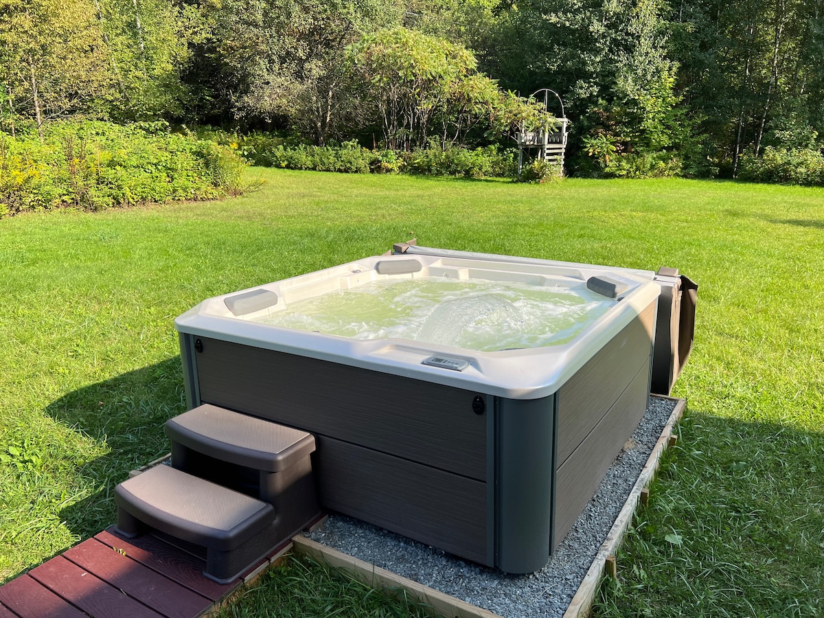 Entspanne dich in diesem einzigartigen und ruhigen Rückzugsort in den ruhigen Bergen von Vermont, abseits der ausgetretenen Pfade und doch in der Nähe von Jay Peak und Smuggler's Notch, innerhalb von 45 Minuten von Stowe (1 Stunde im Winter) und 45 Minuten von Burlington. Diese maßgeschneiderte, über 2000 Quadratfuß große Luxushütte, die von lokalen Handwerkern handgefertigt wurde, verfügt über einen brandneuen Whirlpool und eine Terrasse, ein Dachboden, eine schöne Essecke und 28 Hektar privates Land mit Wanderwegen auf dem Gelände.