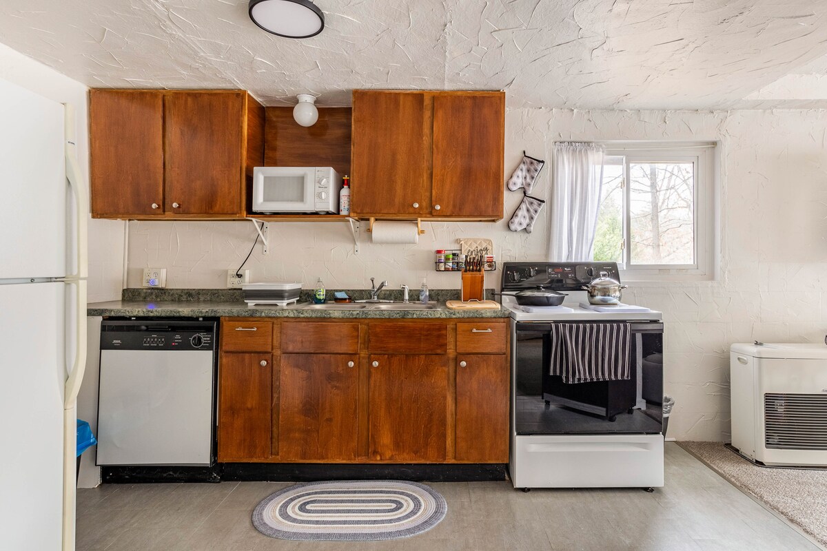 Ich habe meine beiden Endschlafzimmer (450 Quadratfuß) genommen und den Raum in eine Effizienzwohnung mit einem Cottage-Gefühl verwandelt. Die Unterkunft verfügt über einen eigenen Eingang, ein Bad, ein Schlafzimmer, einen Vorratsbereich, einen Wohnzimmerbereich und eine voll ausgestattete Küche. Eingebettet in eine ruhige und freundliche ältere Nachbarschaft – ideal zum Wandern. 3,6 Meilen von der Innenstadt von Hendersonville, 7,5 Meilen vom Flughafen AVL, 30 Meilen vom Tryon Equestrian Center entfernt. Ein Kingsize-Bett, ein Tagesbett (Zwillingsmatratze). Zwei Katzen und ein winziger Hund leben auf dem Gelände, sind aber in dieser Unterkunft nicht erlaubt.