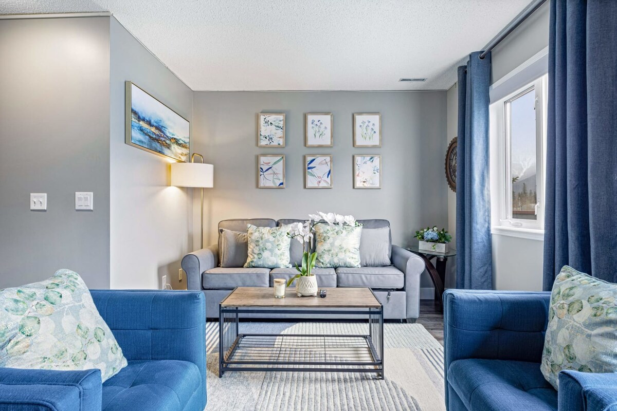 Willkommen in unserer neu ausgebauten Ferienwohnung in Canmore, nur wenige Minuten von der Innenstadt von Canmore entfernt! Fahre bis zu unserer Tür, parke in den zur Verfügung gestellten freien Plätzen und gehe direkt in unseren komfortablen, zweistöckigen Rückzugsort, der für deinen Bergurlaub ausgestattet ist. Genieße den Luxus, den wir anbieten, wie einen Banff-Parkpass, einen Grill auf der Terrasse, einen gemütlichen öffentlichen Whirlpool und Highspeed-WLAN! BITTE BEACHTEN! Das Parken ist sehr eng. Ich würde diese Einheit nicht für diejenigen mit einem großen Fahrzeug empfehlen.