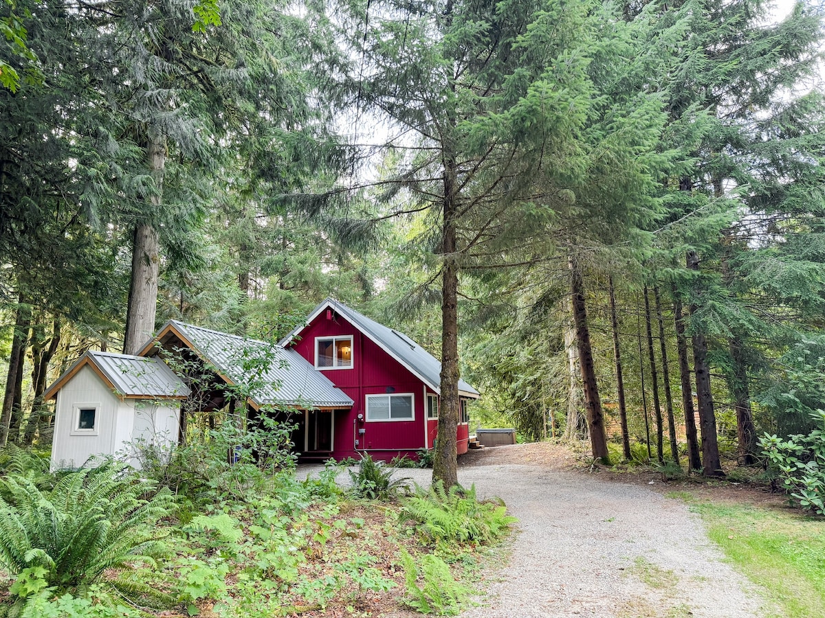 Now booking for hiking season! A dog-friendly tiny cabin in Baring with private outdoor living areas (hot tub!), a river across the road and mountain views as the backdrop. The perfect basecamp for hiking in the Cascades, tubing on the Skykomish River, rock climbing in Index, or skiing at Stevens Pass. Cozy and peaceful, this cabin is ideal for a romantic retreat, relaxing solo escape or remote work. Less than 30 mins from Stevens Pass, and an hour from the popular Bavarian town of Leavenworth!
