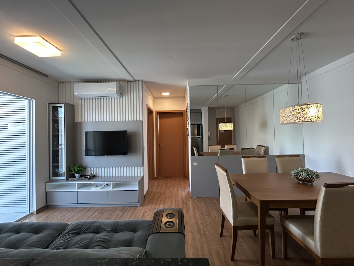 Relaxe neste espaço de bom gosto, conforto e tranquilidade. * Sala c/vista Mar e por do sol * Cozinha equipada p/a preparação de um jantar de chef, como p/um lanche rápido. Louças, taças, panelas, airfreyer * Banheiros c/ducha a gás * Suíte: Acorde olhando o mar, cama Queen, colchão king koll, muito confortável * Quarto/Escrit. Bancada p/trabalho c/ vista mar e Cama casal box * Smart TV c/assinatura de canais * Internet * Ar Condicionado em todos os cômodos Um luxo