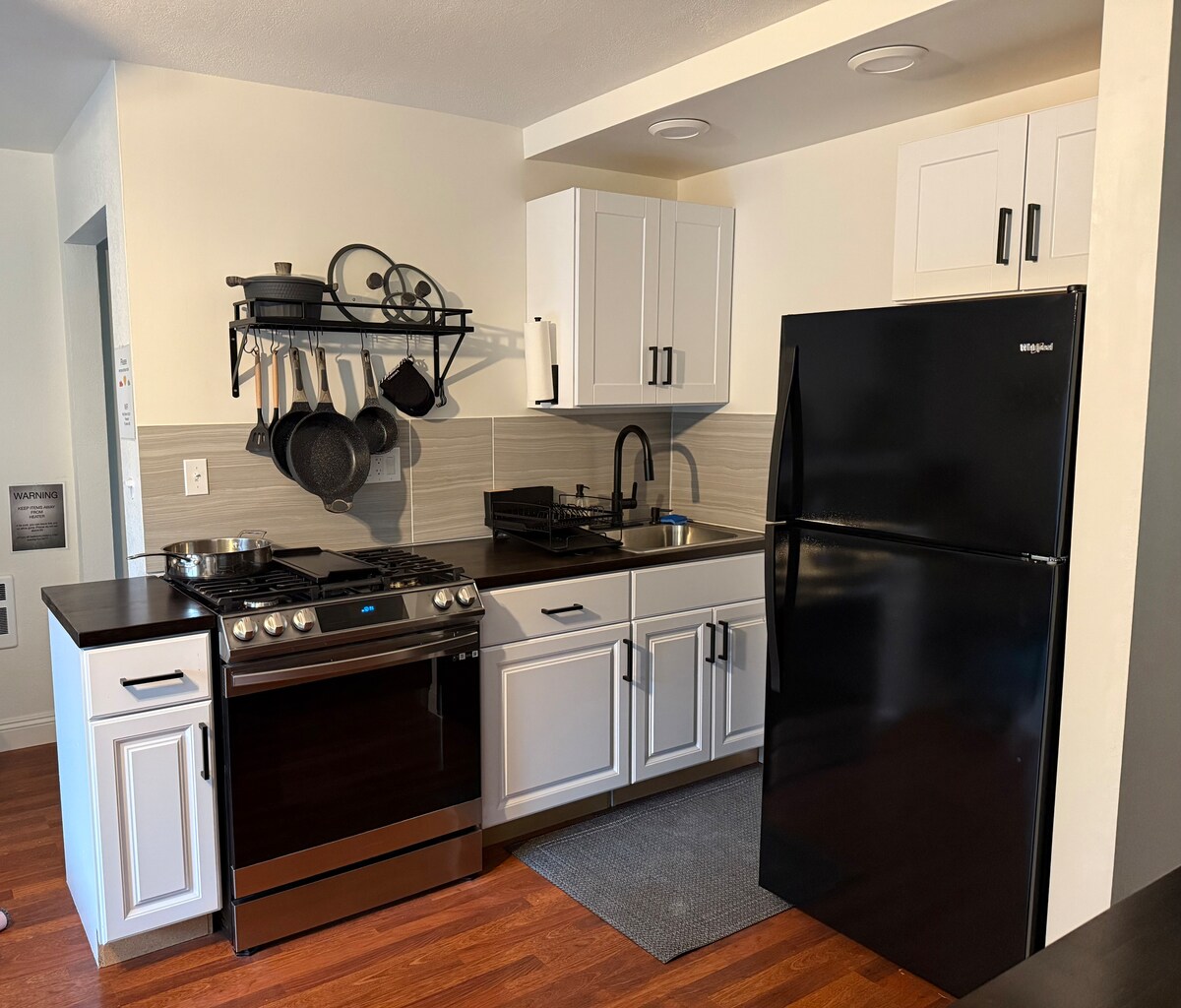 Ausgezeichnete Lage mit Blick auf den Redwood-Wald. Unser Bungalow ist komplett ausgestattet. Komm mit deiner Bauernmarkt-Beute nach Hause und nutze die gut ausgestattete Küche oder den Balkongrill. Mach es dir im Wohnzimmer per Knopfdruck mit dem Gaskamin und Smart-TV gemütlich. Schlaf fest im Kingsize- oder Queensize-Bett. Wenn du zusätzliche Personen hast, kann ich eine Luftmatratze zur Verfügung stellen. Gehe von deiner Tür zum Cal Poly Humboldt, zum Arcata Plaza und zum Shay Park. Ein wunderbarer Ausgangspunkt.