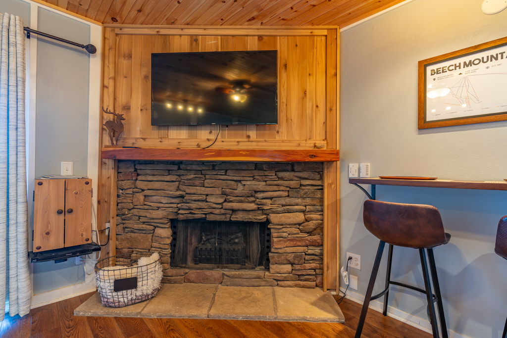 Genieße die Langstrecken-Bergblicke vom vorderen Eingang dieser kürzlich umgebauten Dachgeschoss-Endeinheit. Genieße an kühlen Herbst- und kalten Winternächten die Wärme des großen Steinkamins. Die hintere Terrasse der Unterkunft zwischen den Bäumen bietet einen virtuellen privaten Rückzugsort. Der Zugang zum Beech's Alpine Village zum Skifahren/Snowtubing/Eislaufen ist nur einen kurzen Spaziergang entfernt. Die Welt des High Country, die Beech Mountain ist, beginnt buchstäblich vor der Haustür der Wohnung.