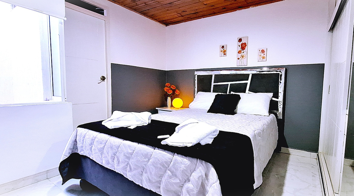 Moderne Wohnung in Granada, dem besten kulturellen und gastronomischen Viertel von Cali. Das Hotel befindet sich im 4. Stock des eleganten Hayedo Juanambú-Gebäudes und bietet Komfort, einen großen Balkon mit Blick auf die Stadt, Queensize-Betten und Klimaanlage in beiden Zimmern. Wohnzimmer mit Schlafcouch und Deckenventilator. Zwei voll ausgestattete Badezimmer mit heißem Wasser. Voll ausgestattete Küche, Waschmaschine und Trockner. Highspeed-WLAN (300 Mbit/s), Drucker, 3 SMART-TVs. Das Hauptschlafzimmer verfügt über einen begehbaren Kleiderschrank, einen Safe und Zugang zum Balkon.