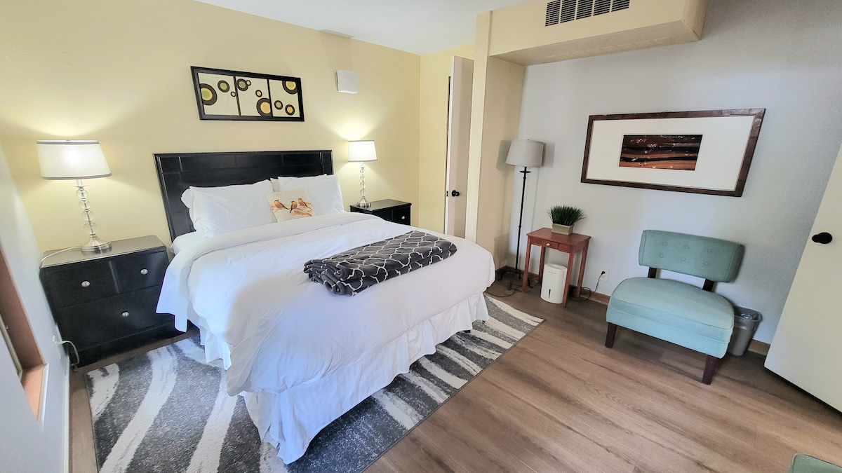 Entspanne auf den privaten Balkonen mit Blick auf den Park. Nach deinem Kaffee kannst du einen 2-minütigen Spaziergang zum Deschutes River Trail unternehmen. Oder gehe 10 Minuten und du bist in der Innenstadt von Bend. Nach einem Tag voller Outdoor- und Skiabenteuer wirst du das Kingsize-Bett oder die Entspannung am Kamin lieben. Du hast superschnelles WLAN mit Netflix und einen Smart-TV in jedem Zimmer. Möchtest du länger bleiben? Schick uns eine Nachricht, um über Langzeitaufenthalte und mobiles Arbeiten zu sprechen. In lokalem Besitz und auch lokal verwaltet. Buche noch heute deinen Aufenthalt!