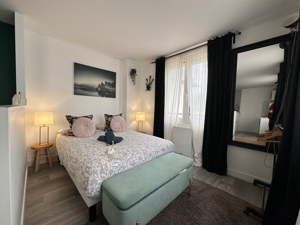 Whirlpool und Ruhe zum Entspannen 🥰 Träumen Sie von der Flucht? 🙏🏻 Reisen Sie in diese Vintage-Suite im Herzen der Stadt Caen, ideal für einen romantischen Moment oder für die Arbeit. Nur einen Katzensprung von allen Geschäften, Restaurants, Bars, Kino, Boutiquen entfernt. ✨ Sie haben alles, was Sie für einen angenehmen Aufenthalt benötigen! 😇