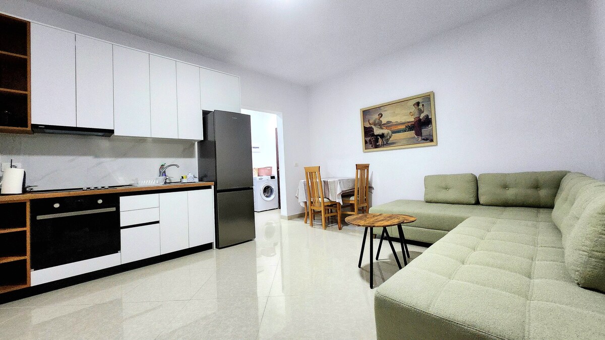 Welcome to your home away from home in Berat, Albania known as the “City of One Over One Windows”. This stylish, fully furnished apartment is located in a two-story villa near Deshmoret e Kombit Park and Gorica Bridge. It features a spacious living room with sofa bed, a modern bedroom with a queen bed, a fully equipped kitchen, private balcony, shared terrace with grill, and washing machine. Perfect for small groups, couples or families exploring historic Berat. We can’t wait to host you.