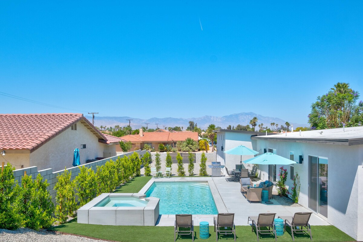 Experience the ultimate desert escape with friends and family at our stylish 4-bedroom retreat, blending boho charm with mid-century modern design. 🌴 Heated Saltwater Pool & Spa (optional heating) 🛏️ Luxurious Casper Mattresses for a restful night’s sleep 📺 75" Smart TV 🍳 Fully Equipped Kitchen with a Nespresso & Margaritaville machine 🍔 Outdoor Dining & 6-Burner Grill ⚡ High-Speed Wi-Fi (400 Mbps) 🏓 Table Tennis for fun evenings 📍 City License: #259364