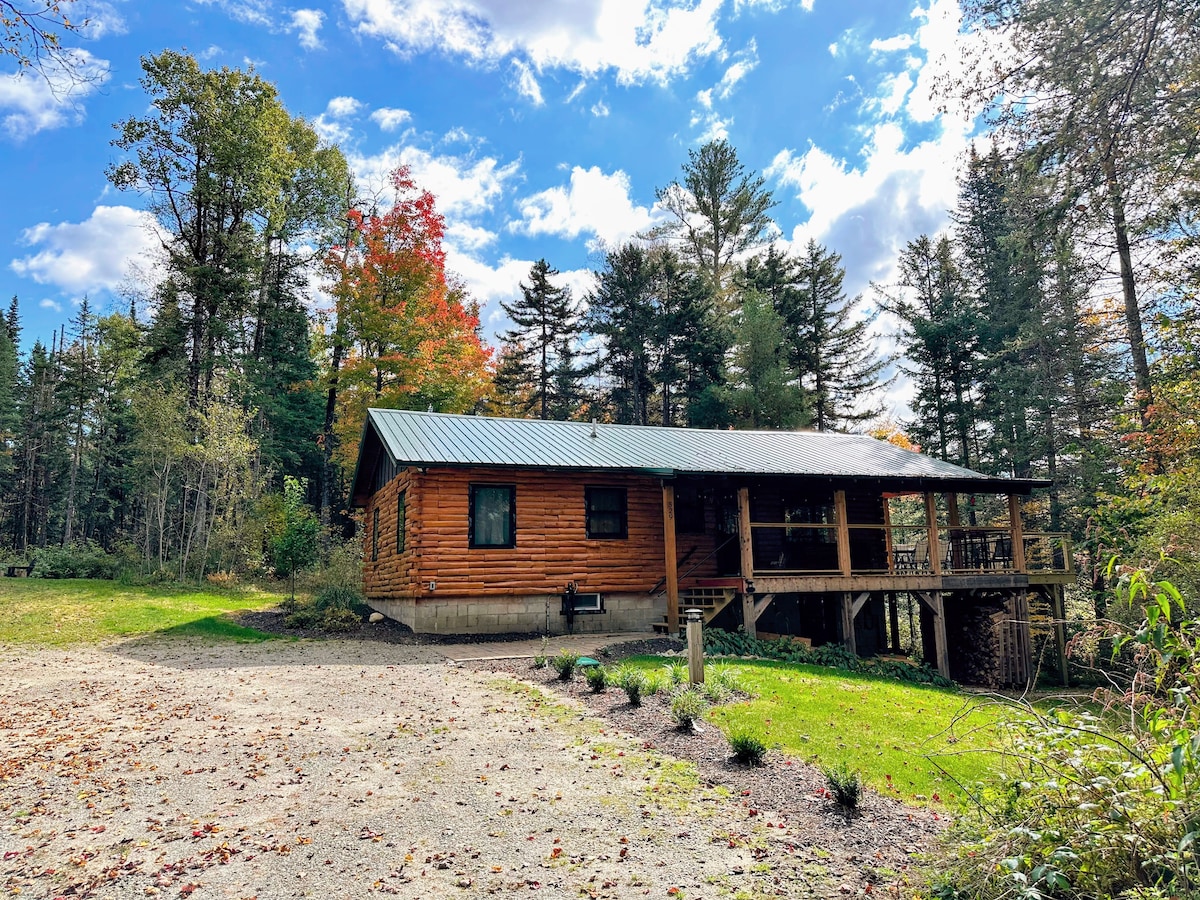 Neu gebautes Blockhaus im Chalet-Stil, das sowohl in Cabin Living als auch in Log Cabin Homes Magazines vorgestellt wurde. Weitläufiger Blick auf die Berge und den Sonnenuntergang. Modernes, skandinavisches Dekor. Großzügige Frontterrasse und überdachte Veranda zum Sonnenbaden, Sternenbeobachten und Essen im Freien im Sommer und Herbst. Der hochragende Steinkamin sorgt in den Wintermonaten für eine warme, voll ausgestattete Skihütte. 5 Minuten von Cannon und 20 Minuten von Loon und Bretton Woods entfernt. Kilometerlange National Forest Trails vor der Hintertür.