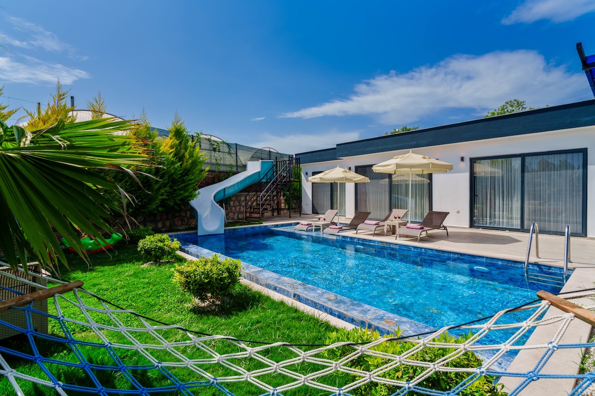 Villa Kekik ist unsere Ferienvilla für 4 Personen in der Region Kalkan Sarıbelen. Unsere Villa verfügt über einen großen Garten. Es gibt 130 Quadratmeter Rasenfläche. Der geschützte Poolbereich bietet Ihnen einen angenehmen Urlaub mit Ihrer Familie. Merkmale unserer Villa ~ Hamam ~Sauna ~ Tischtennis ~ Tischfußball ~ Freiluftkino ~ Hängematte ~ Backgammon ~ Okey-Set ~ Rutsche und Schaukel für Kinder