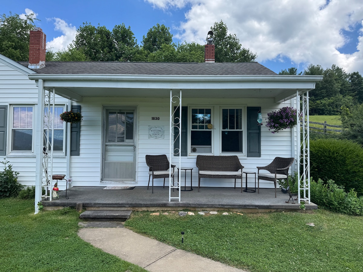 Entspanne und erhole dich in diesem neu renovierten Blockhaus mit herrlicher Rundumaussicht. Speise auf der überdachten Terrasse, nippe an Wein an der Feuerstelle, höre Smooth Jazz über Bluetooth und schlafe wie ein Baby in der luxuriösen Bettwäsche. Atemberaubend zu jeder Jahreszeit! Berggipfel-Lage mit privater Auffahrt. Voll ausgestattete Küche. 55-Zoll-Fernseher mit Netflix, Hulu und mehr. FWD im Winter empfohlen. Erkunde die nahegelegenen Weingüter, Wanderwege und fahre Kajak auf dem New River. 15 Minuten zu Geschäften und Restaurants in der charmanten Innenstadt von West Jefferson.