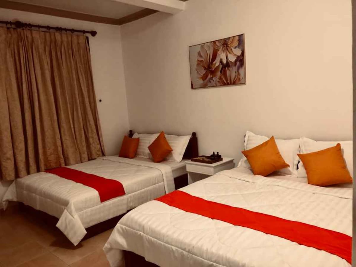 Entdecken Sie die Ruhe in unserem intimen Zimmer für zwei Personen im Lotus Garden Resort. Mit einzigartigem Dekor verziert, verbindet es Kunstfertigkeit mit Komfort. Genieße einen Gartenblick und entspanne dich mit einigen zusätzlichen Dienstleistungen: Frühstücksbuffet, Sauna, Reiseleiter und Massageservice. Ein einminütiger Spaziergang bringt dich zum Strand, wo du die Schönheit des Sonnenuntergangs genießen kannst. Unsere zentrale Lage bietet einfachen Zugang zu vielen Sehenswürdigkeiten wie Fairy Stream, Orange Sand Dunes, Mango Beach, Wine Castle usw. nur innerhalb von 5-15 Minuten Fahrt.
