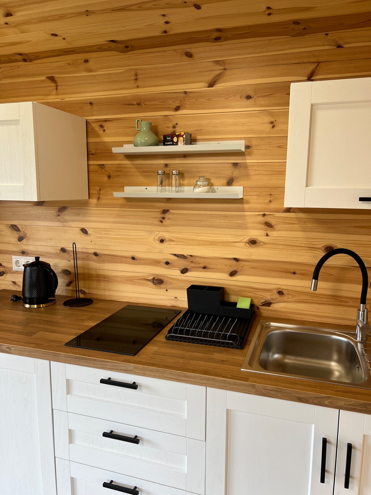 EV-freundliches, traditionelles, von der Küste inspiriertes Architekturhaus ausgestattet, das den Bedürfnissen eines unabhängigen Urlauber gerecht wird. Das Haus bietet alles, damit du dich wie zuhause fühlst, einschließlich einer komfortablen Küche, Fußbodenheizung, Klimaanlage, Dusche und WC, einem Loft sowohl für Erwachsene als auch für Kinder, bequemen Matratzen. Das Haus bietet 6 Schlafplätze: 2 Doppelbetten im Obergeschoss und Schlafsofa im Erdgeschoss. Babybett, Hunde-Kissenbett, Arbeitsset, Typ2-Kabel auf Anfrage verfügbar.