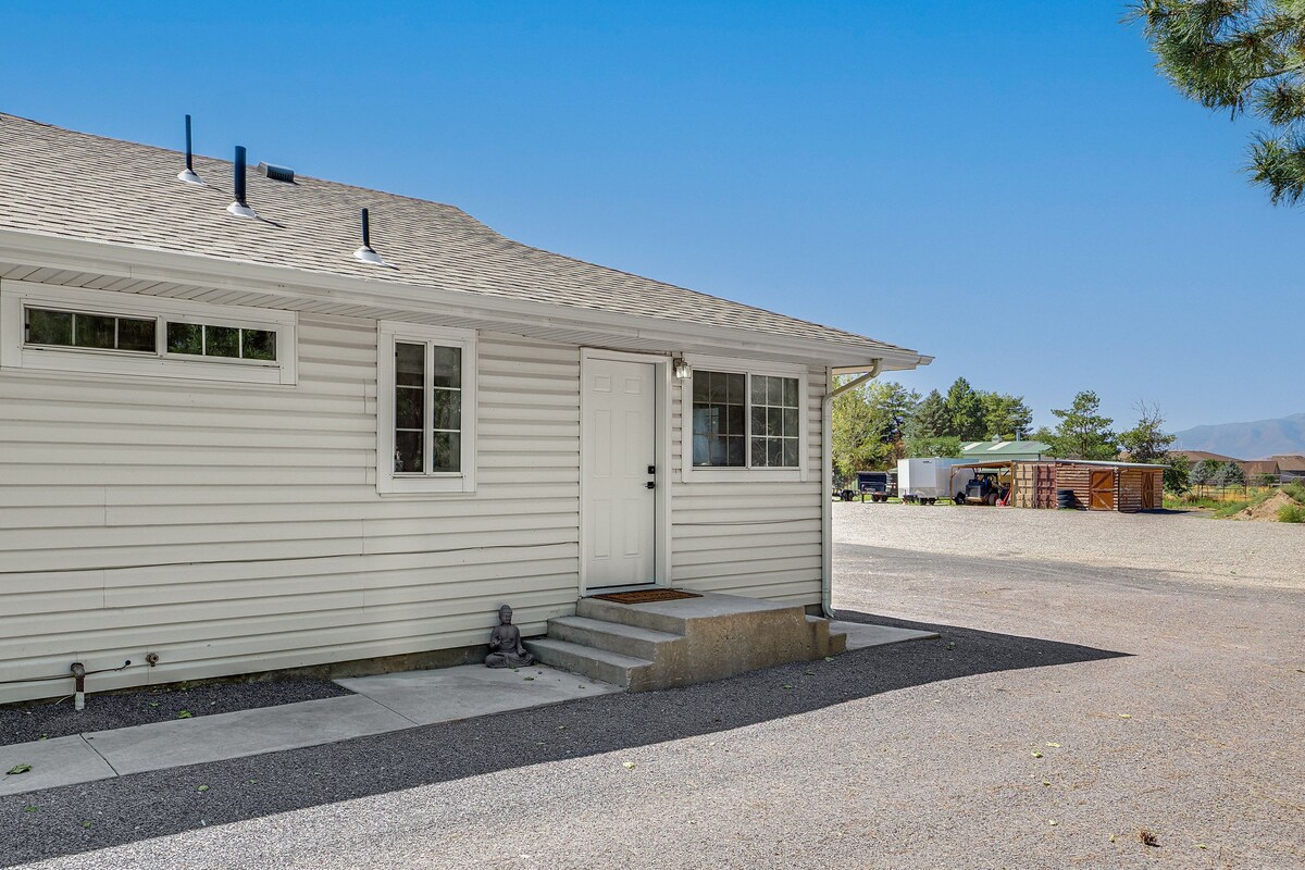 Willkommen in deiner Luxus-Suite mit Bergblick! Genieße einen atemberaubenden Bergblick und Privatsphäre in diesem geräumigen, 74 m² großen, neu gebauten, ruhigen und zentral gelegenen Gästehaus. Diese wunderschöne Lage auf dem Land liegt in der Nähe von Salt Lake City, berühmten Skipisten und vielen wunderschönen Wanderwegen. Entspanne dich nach einem anstrengenden Arbeitstag oder einem Tag auf der Piste, indem du eine Mahlzeit in der gut ausgestatteten Küche zubereitest, dich im spa-ähnlichen Badezimmer mit der luxuriösen Zwei-Personen-Badewanne entspannst oder im gemütlichen Kingsize-Bett faulenzst.