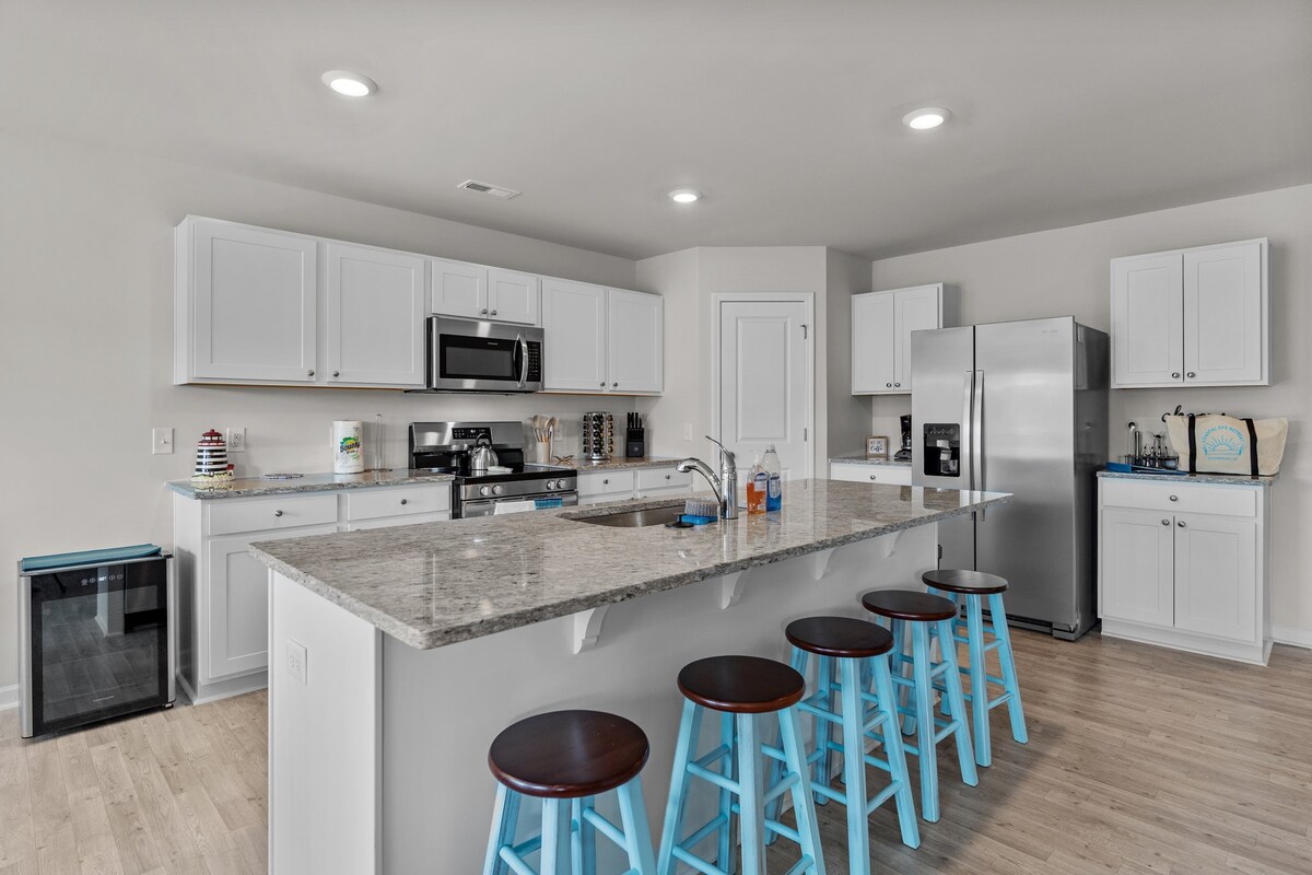 Willkommen in Sweet Hideaways auf Oak Island! Dieses Haus mit 3 Schlafzimmern und 2 Bädern verfügt über eine Außendusche und einen komplett eingezäunten Garten. Genieße Strandutensilien wie Stühle, Sonnenschirme, Boogie-Boards und einen Gorilla-Wagen für einen einfachen Ausflug an das Ufer. Familienfreundlich mit Hochstuhl, Pack n Play, Spielzeug, Spielhäusern und einem lustigen, individuellen Wandgemälde! Nur 0,7 Meilen zum Strand und 1 Block zum ICW. Spaziergang zum Middleton Park und zum Splash-Pad in wenigen Minuten! Günstig gelegen in der Nähe von Restaurants und Geschäften.