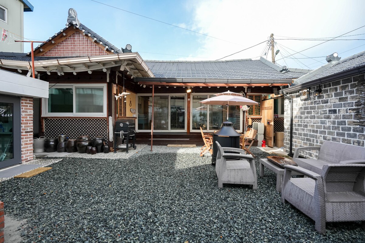 #Stay Gamdo# Privates Hanok-Gästehaus, Terrasse, luxuriöser Grillplatz, Sommerpool, Meerblick, für Familien, Haustiere erlaubt