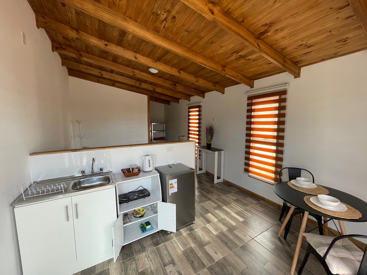 Cabañita Boutique ist mit exzellenten Oberflächen und Materialien entworfen und gebaut. Es ist gemütlich, mit einem einzigen Raum, es ist geräumig und komfortabel. Ideal für ein Paar oder ein Paar mit einem Kind. Sie hat eine geschlossene Terrasse, die vor dem Wind geschützt ist, mit einer Insel-Badewanne zum Entspannen. Ein schöner Blick auf den Garten und das Meer an einigen Stellen. Das Hotel liegt 5 Autominuten vom Strand Punta de Lobos entfernt. Wir haben WLAN.
