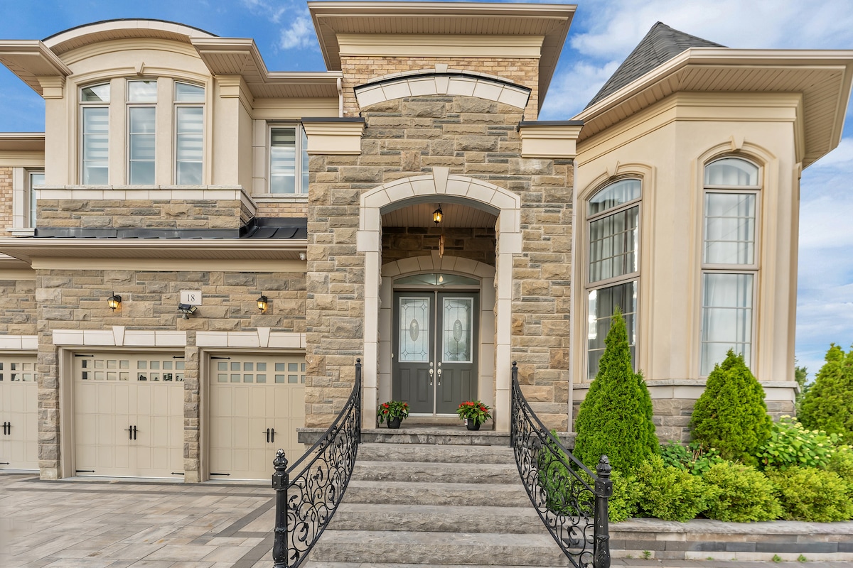 ⭐️ 98″ IMMERSIVE CINEMA⭐️ Experience a VIP Theather Setup w/ a massive 98" Smart TV, soundbar, subwoofer, sleek fluted panels, & soft mood lighting ⭐️RELAX & RECHARGE⭐️ - Unwind in the Master Suite w/ a Smart TV & electric fireplace! -Step into private backyard featuring a BBQ (year-round) and a stone waterfall fountain (Summer/Fall) 🏡 Private 3BR/2BA Bunglow 🍳Modern Chef's Kitchen ✈️ ~15 min toPearson Airport 🛍️ ~2 min to Mall 🚆~5 min to GO Station
