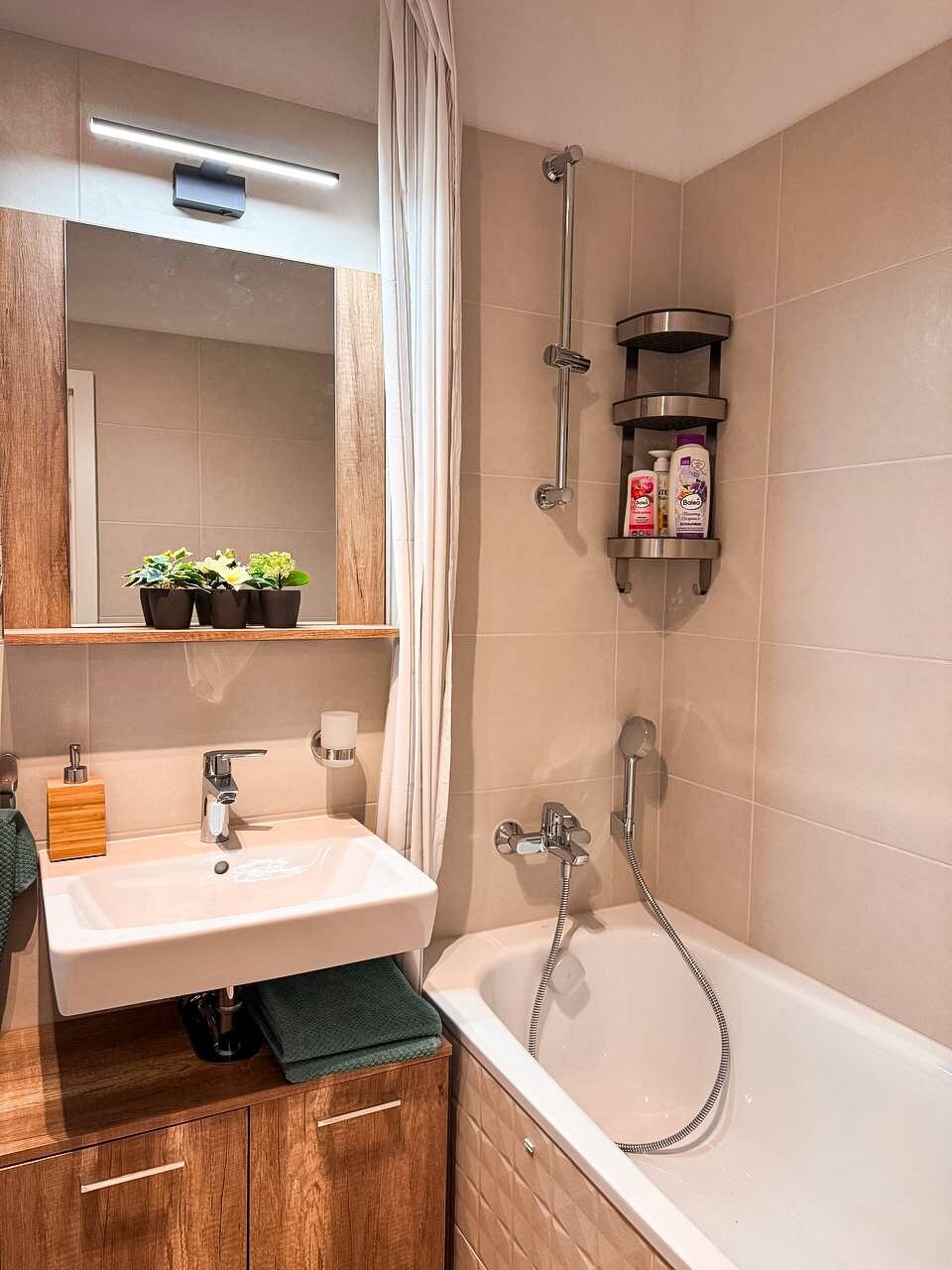 Wenn du auf der Suche nach einer modernen Wohnung in einer ruhigen Gegend bist, die von Natur umgeben ist und dennoch in der Nähe des Stadtzentrums liegt, hast du sie gefunden! Direkt vor dem Gebäude nimmst du die Straßenbahn 4, die dich direkt in die Altstadt von Bratislava bringt (15 Minuten). Du wirst auch jede Menge Aktivitäten direkt nebenan zu schätzen wissen: Fitness, Sauna, Sommerpools, Squash. Obwohl die Wohnung keinen eigenen Parkplatz hat, verfügt das Apartmenthaus über kostenlose Parkplätze für Gäste.