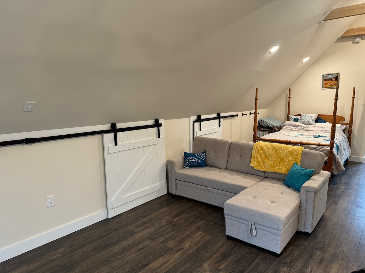 *WINTER IN VT* Come ski or explore while staying at our welcoming and comfortable 2nd floor studio apartment with plush linens, comfortable king bed, a well equipped kitchenette plus space to relax, work & play. + Garage parking. 7 min from Middlebury with all its amenities 9 mins to college campus 5 min from Lake Dunmore 13 min from Brandon 16 min from Rikert Outdoor Center for cross country 18 min from Snowbowl for down hill skiing 32 miles - approx 50 mins from Killington for skiing