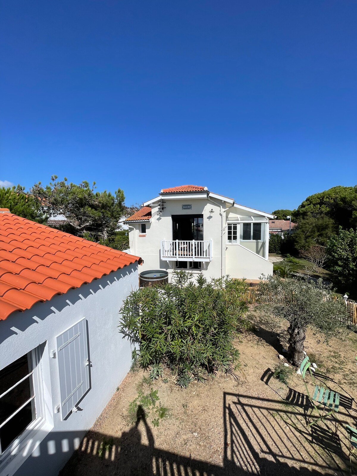 Belle villa de 93 m2 à 500 m de la mer, des plages et de la côte sauvage (la corniche), le tout à pieds ou en vélo (pistes cyclables dans le lotissement). Pièce de vie avec cuisine ouverte et équipée. RDC: 1 chambre/studio (cuisine, SDB, wc) accès terrasse, 2ème chambre (2 lits 90x 190 possible de les coller) avec SDB privative. Etage : Grande suite parentale avec baignoire balnéo, WC, balcon/terrasse privée. Terrain très bien exposé et paysagé. Idéal pour vivre ensemble en toute indépendance !
